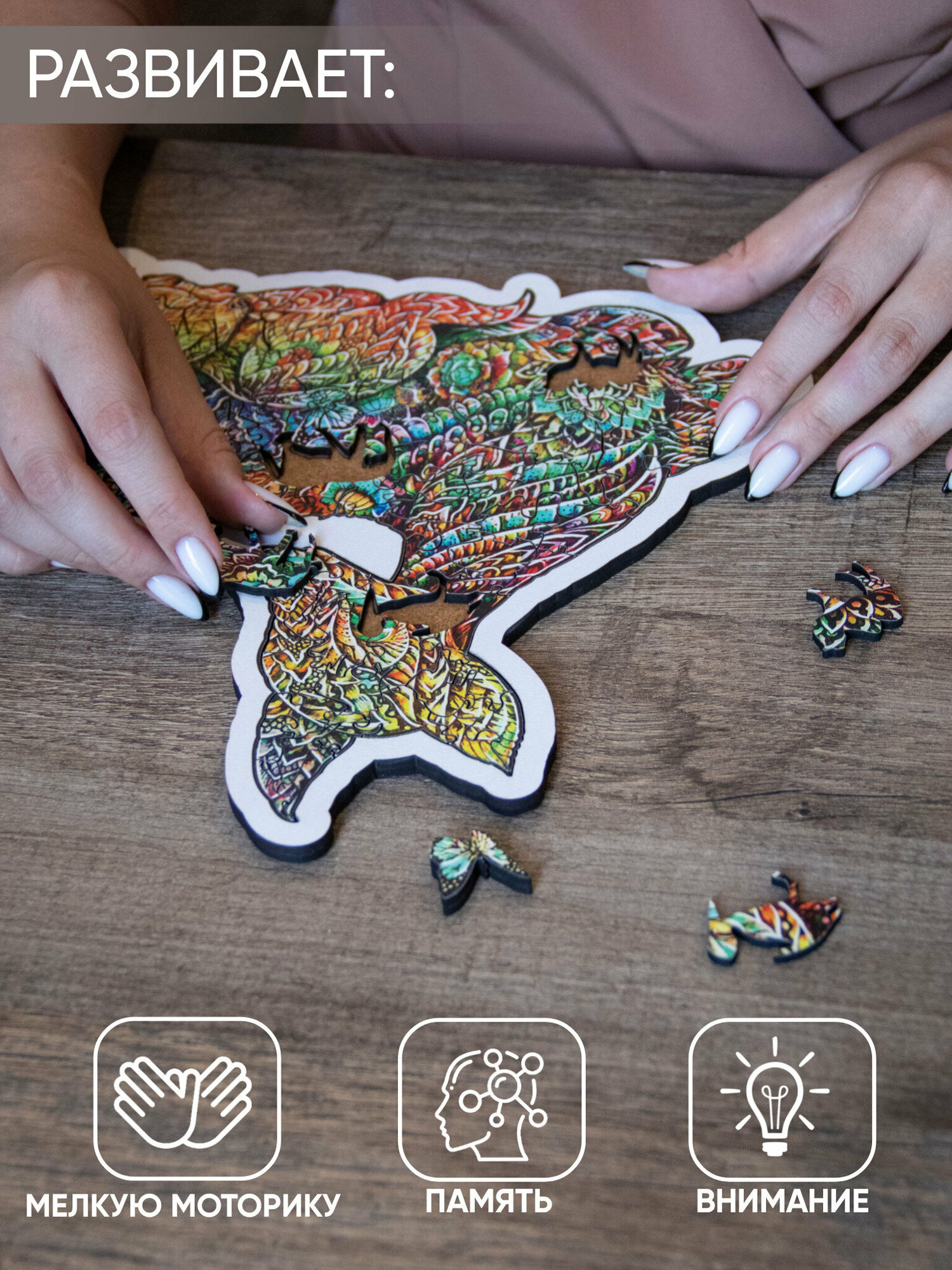 Пазл деревянный фигурный объемный бабочка 20 элементов в форме животных для детей и взрослых PuzzleHome на подложке