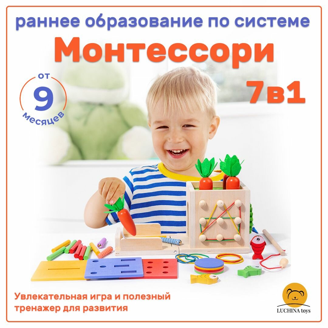 10 цен на Сортер для малышей LUCHINA toys Монтессори набор 7в1 из дерева для развития моторики Обучающая ,развивающая игра