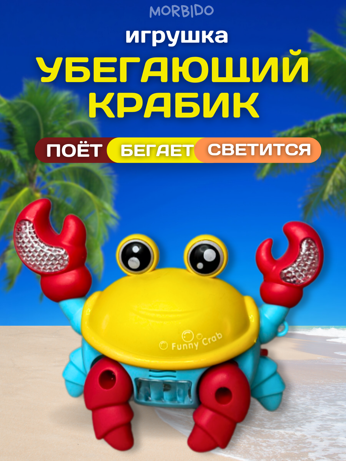 Электронная развивающая интерактивная игрушка краб, бегающий, музыкальный, шагающий, на батарейках желтый/ красный/ зеленый 510 ₽