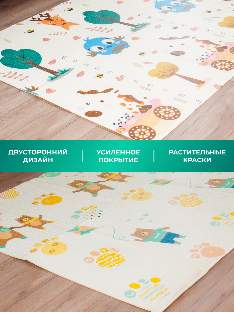 Коврик детский для ползания развивающий игровой 180х200/ складной термоковрик для новорожденных малышей двухсторонний/Мишки и совы информация: