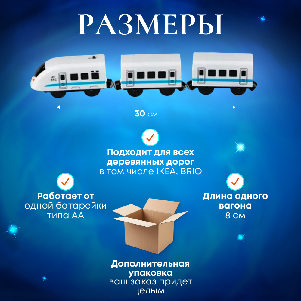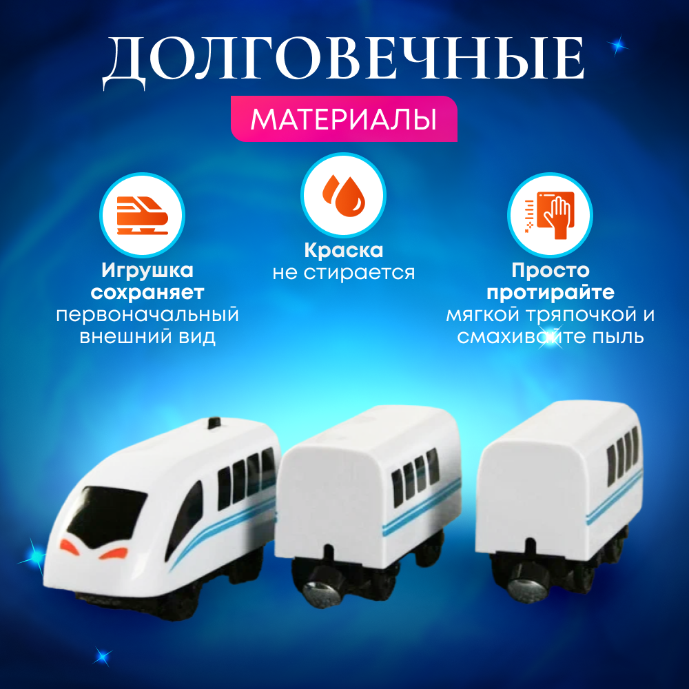 Электропоезд на батарейке для деревянной железной дороги с вагонами информация: