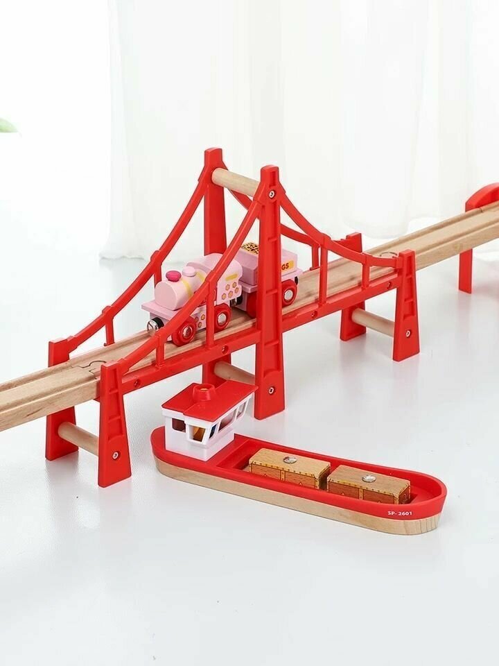 Деревянная железная дорога: корабль с грузом, комплект для мостов, тоннелей, кранов, поездов и электропоездов информация: