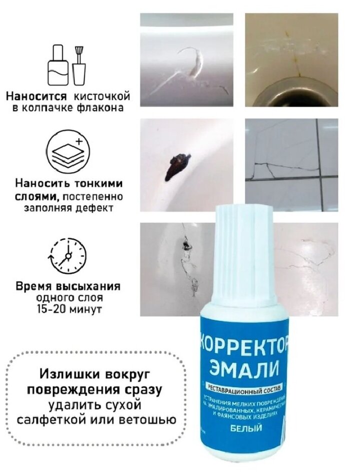 10 цен на Корректор эмали керамики, кафеля, раковины, унитаза в блистере