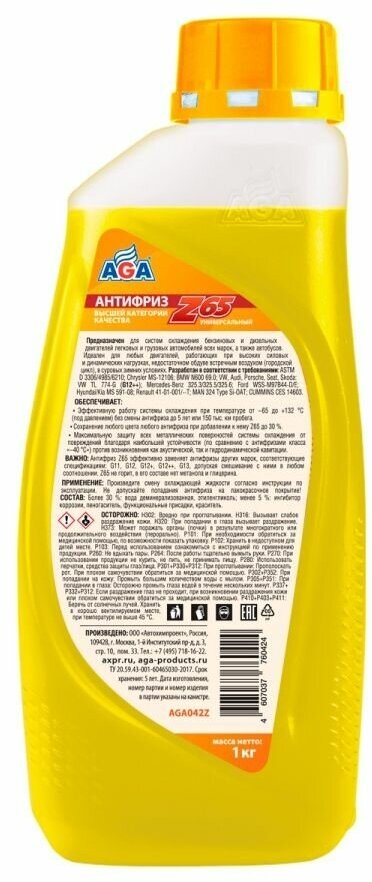 Антифриз желтый готовый Z65 -65C G12 информация:
