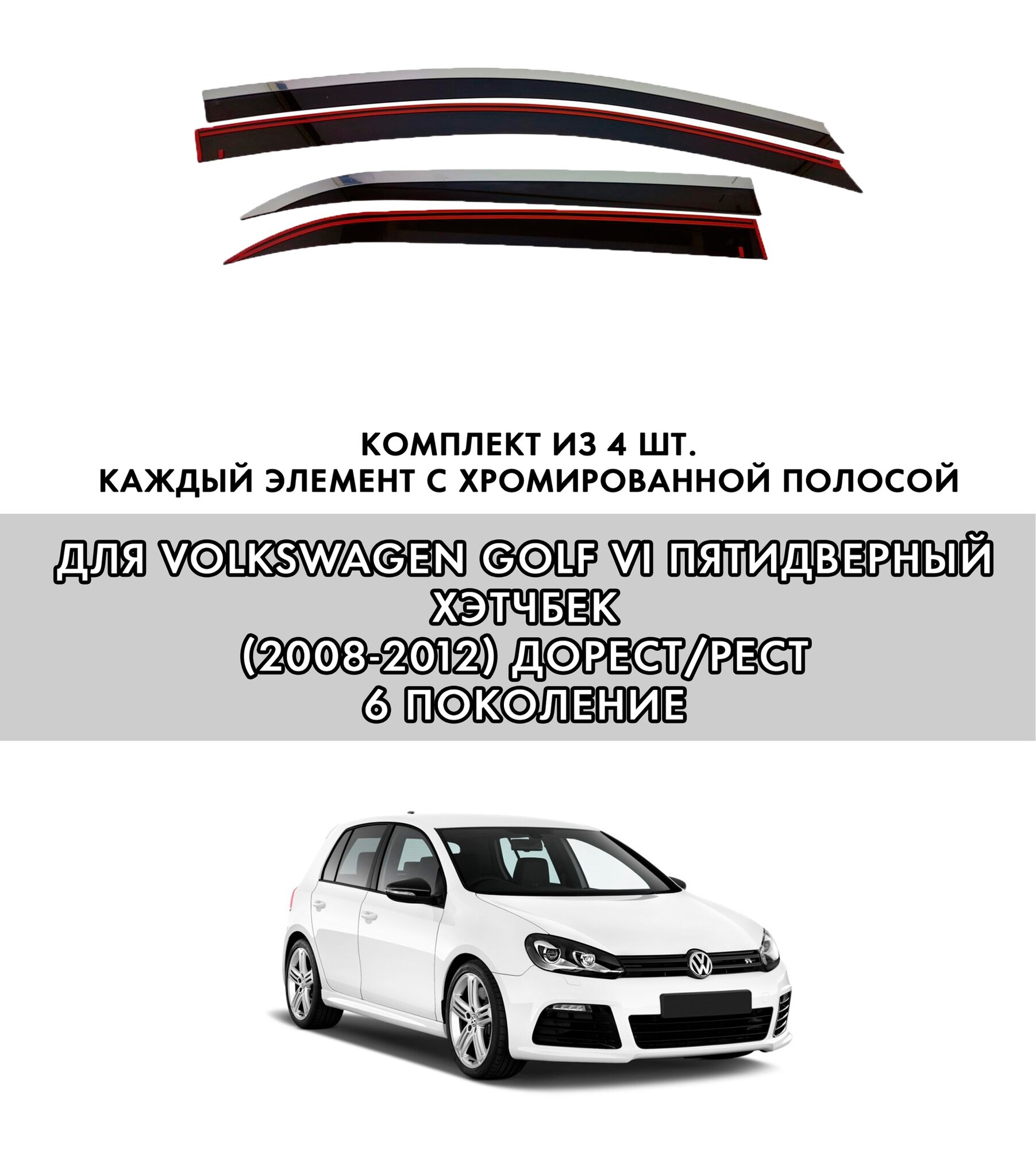 10 цен на Плоские тюнинг дефлекторы с хромом для окон Volkswagen Golf 6 (2008-2012) 5d / Ветровики 2d дефлекторы для Фольксваген Гольф 6 поколение пятидверный. Комплект 4 шт.