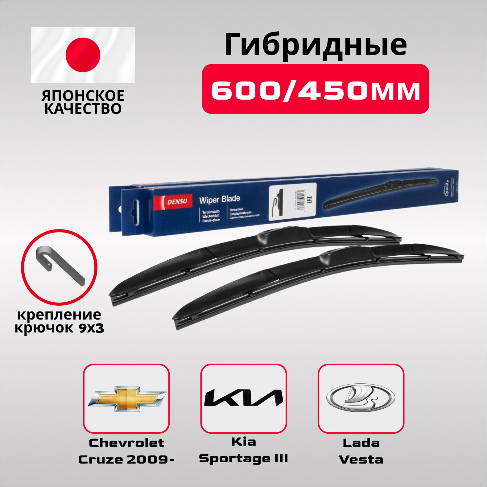 Комплект гибридных щеток DENSO 600 мм+400 мм (крюк) Япония