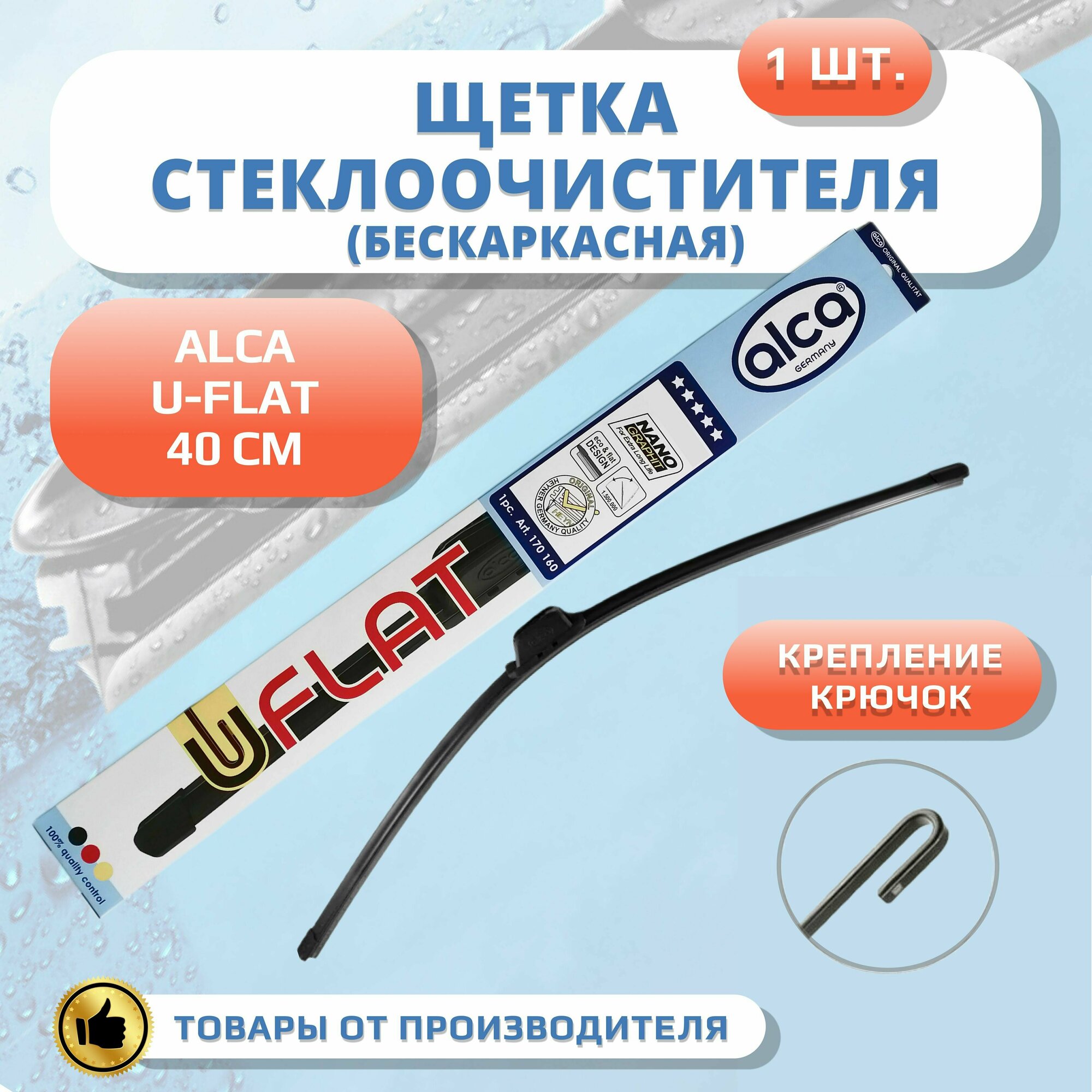 Щетка стеклоочистителя бескаркасная Alca U-FLAT 400мм 1шт. информация: