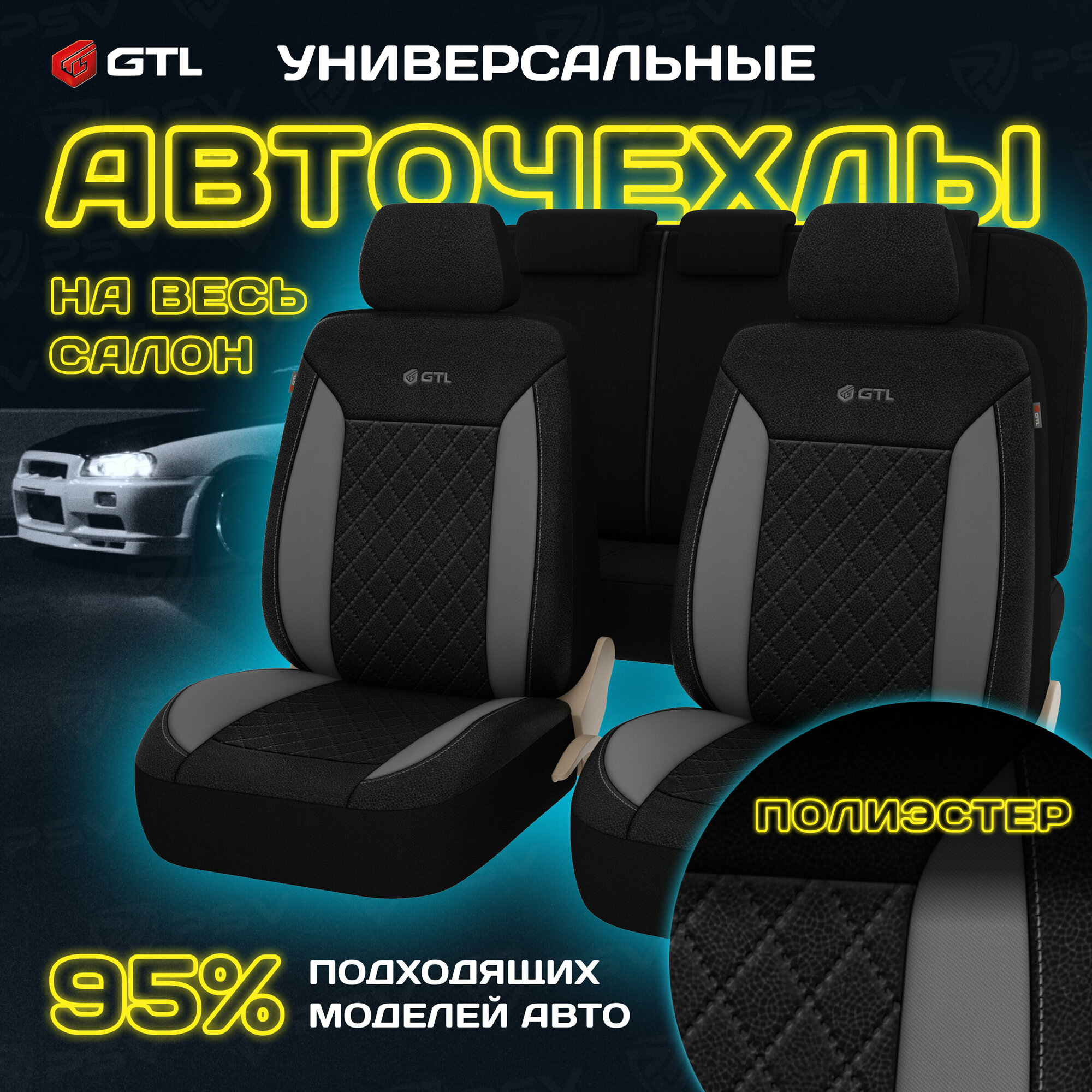 10 цен на Чехлы в машину универсальные GTL Almaz (Т.Серый), полиэстер с имитацией кожи, вакуумная упаковка