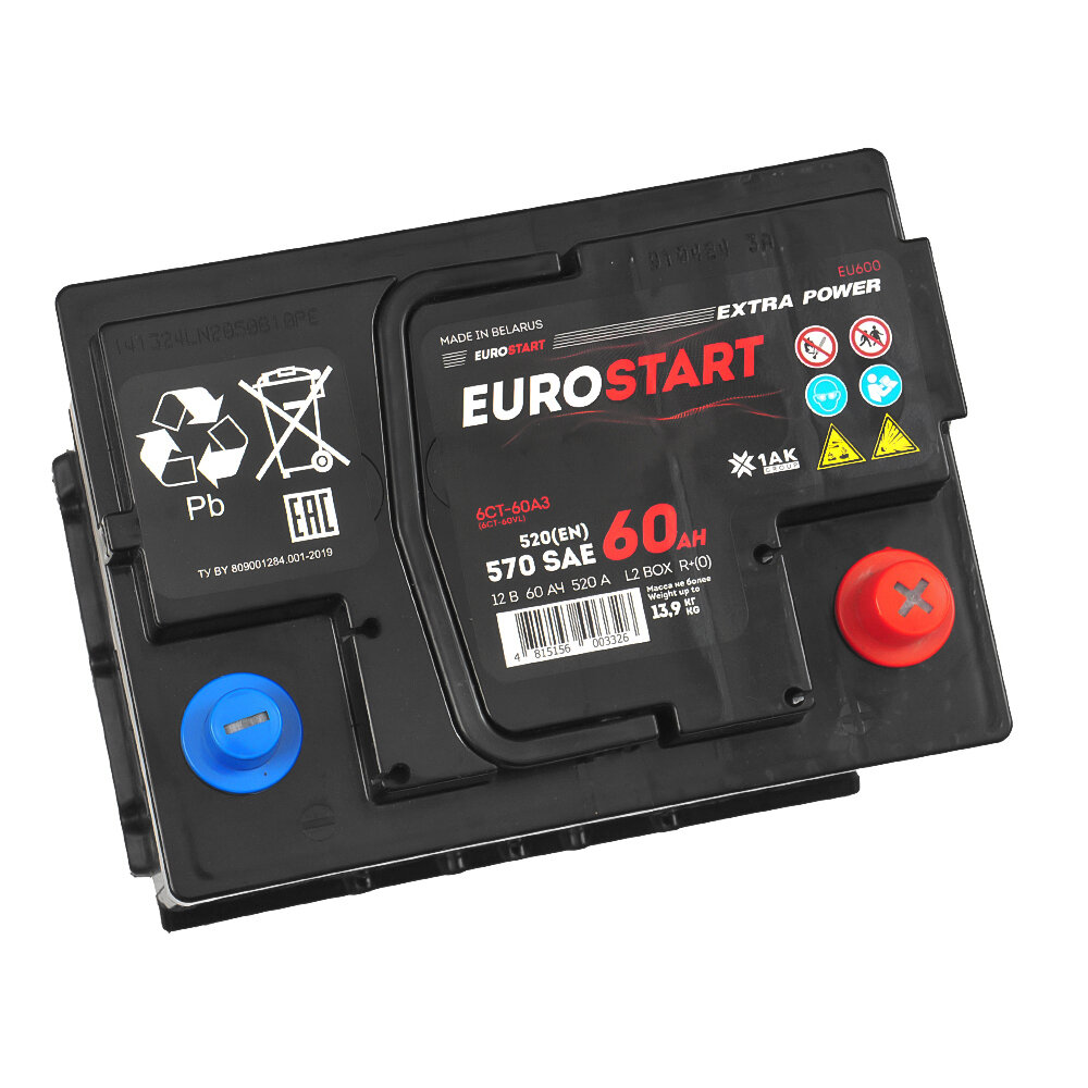 Аккумулятор EUROSTART EXTRA POWER 60 Ач 520А О/П EU600 информация: