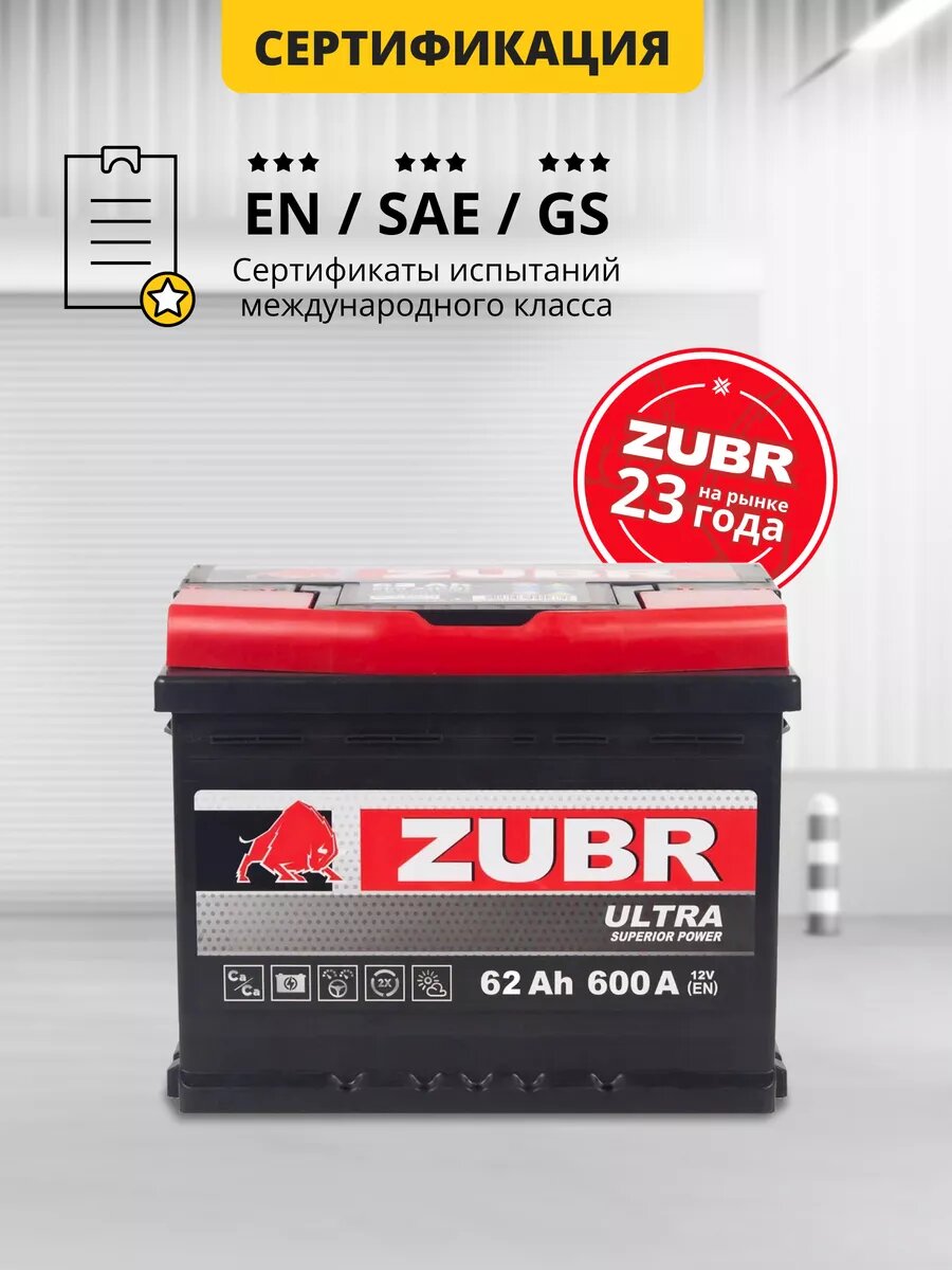 Отзывы на Аккумулятор автомобильный ZUBR Ultra (низкий) 62 Ah 600 A обратная полярность 242x175x175