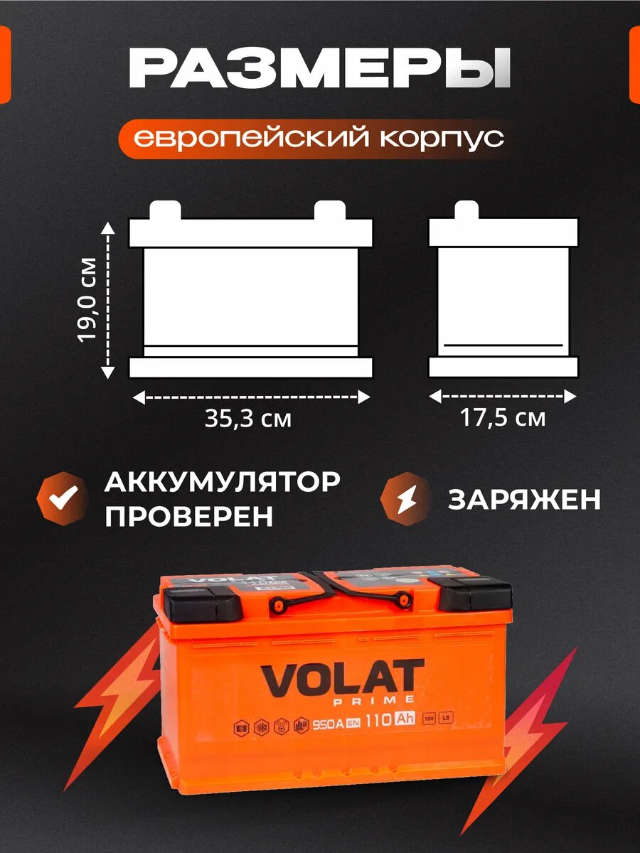 Отзывы на Аккумулятор автомобильный VOLAT Prime 110 Ah 950 A обратная полярность 353x175x190