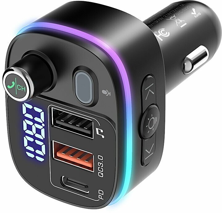 FM трансмиттер Bluetooth с RGB подсветкой / Модулятор автомобильный / Адаптер быстрой зарядки с 3 USB 3.1 A TDS-13