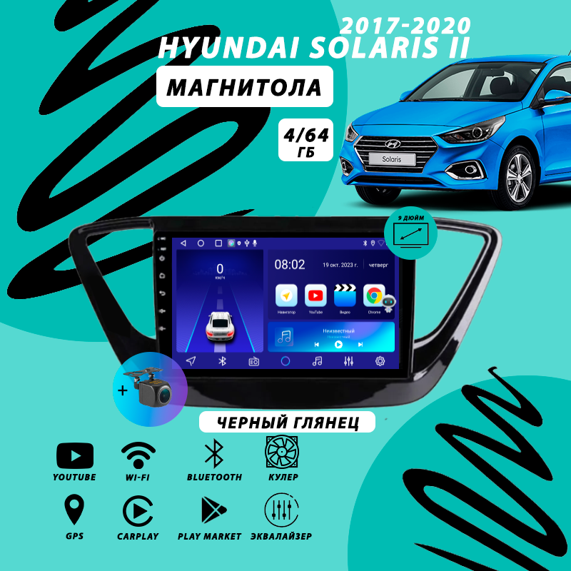 Магнитола Hyundai Solaris 2 (2017-2020) 4Гб+64Гб/глянец/Android/Carplay/кулер/Wi-Fi/Bluetooth/2din/штатная магнитола информация: