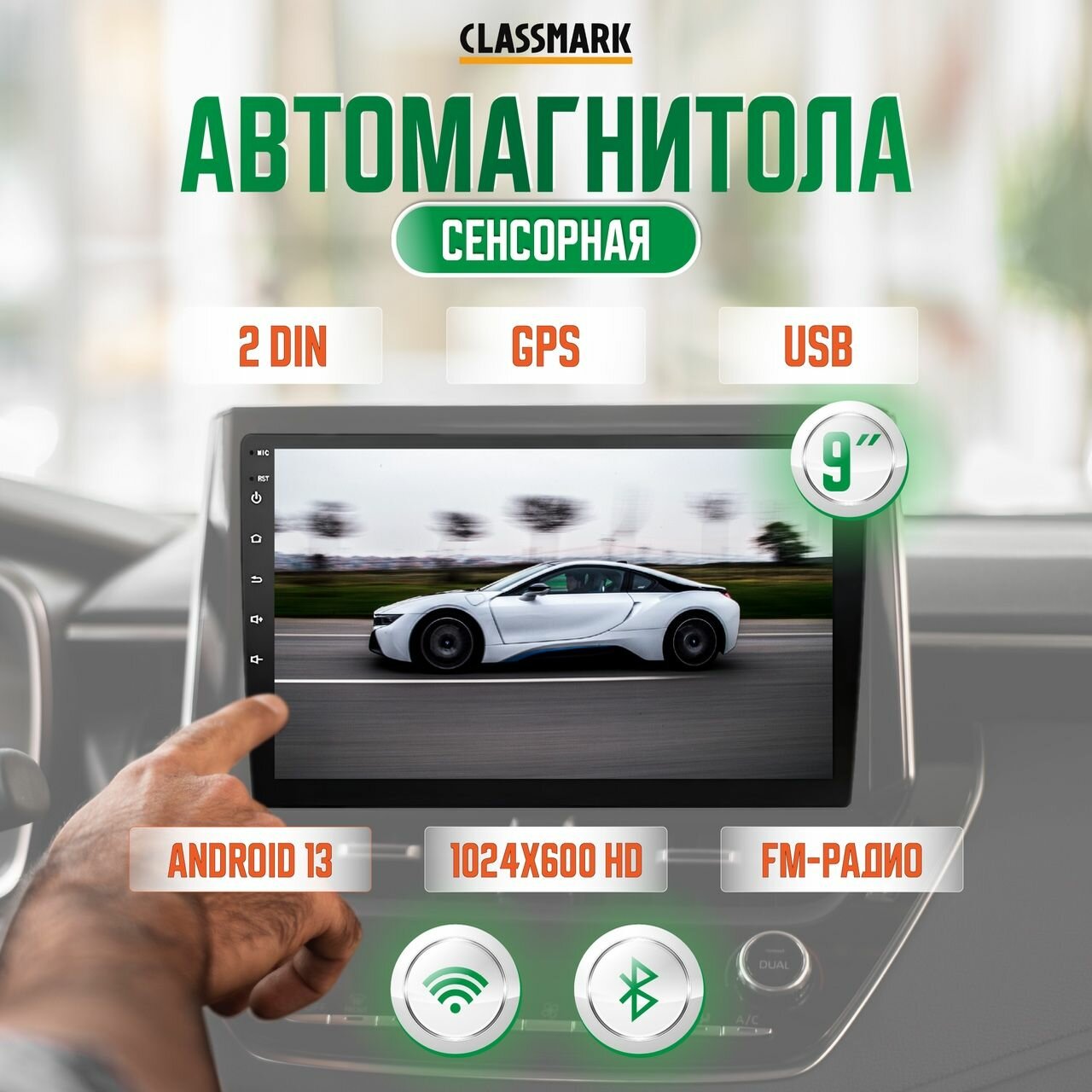 Магнитола для авто 2 din Classmark автомагнитола, 32/1гб внутренняя/оперативная память с bluetooth на android 13 с экраном 9 дюймов для машины и разрешением 1024х600, GPS, Wi-Fi и FM, сенсорный экран информация:
