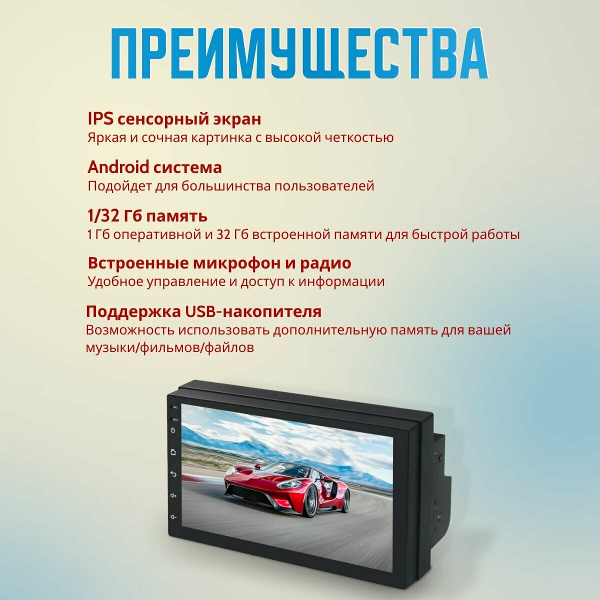 Магнитола для авто 2 din Classmark автомагнитола с bluetooth на android 13 с экраном 7 дюймов, 32гб внутренняя память и 1гб оперативная, для машины и разрешением 1024х600, GPS, Wi-Fi и FM информация: