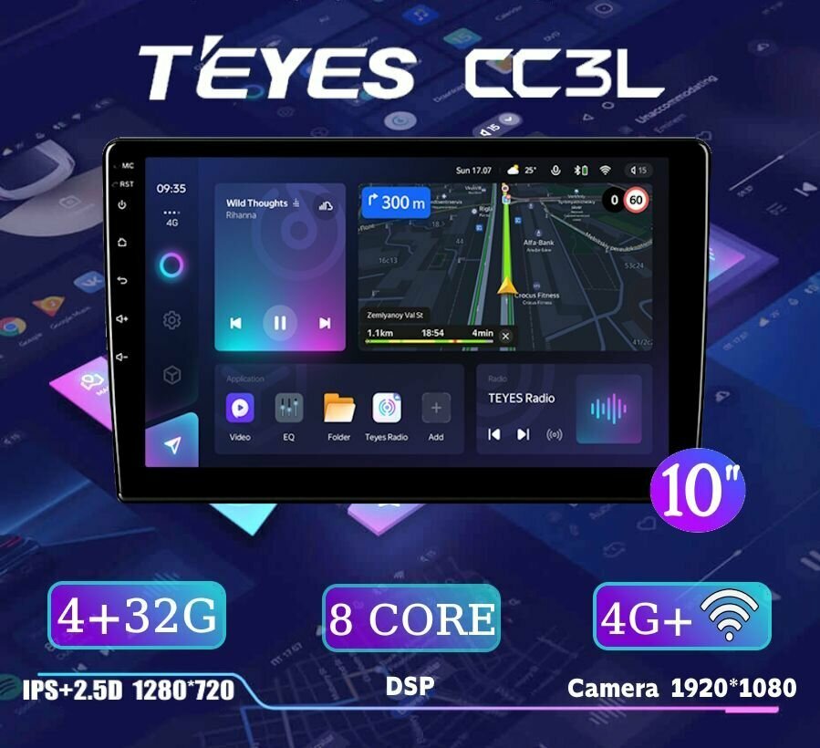 Teyes CC3L 4/32 магнитола универсальная с экраном 10 дюймов(активация голосового управления И универсальный провод питания евростандарта 16 pin. В подарок) информация: