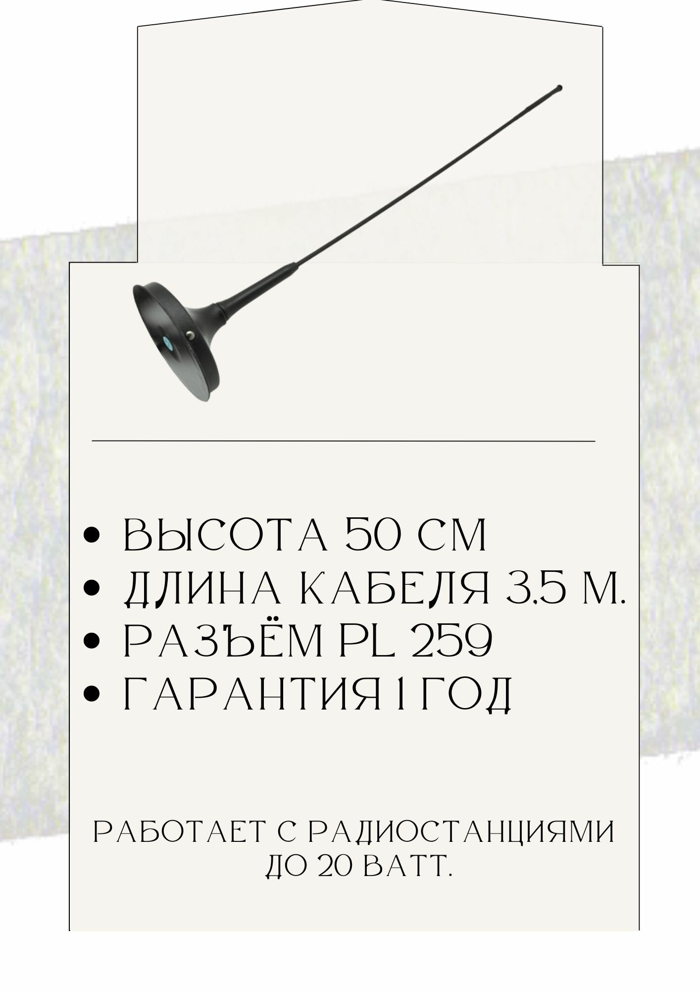 Антенна пассивная автомобильная для приёма радио + ТВ Триада-200 магнитная