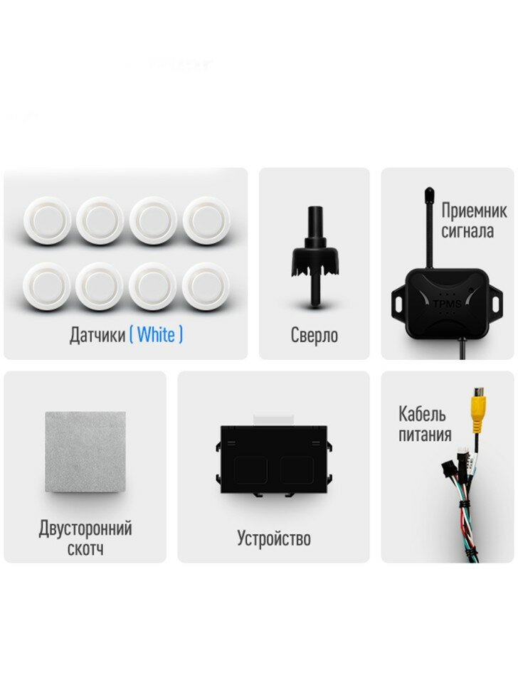 Комплект парктроников Teyes передние и задние для CC3 2K / CC3 / CC2 Plus / SPRO Plus / TPRO 2 / X1 white 8шт информация: