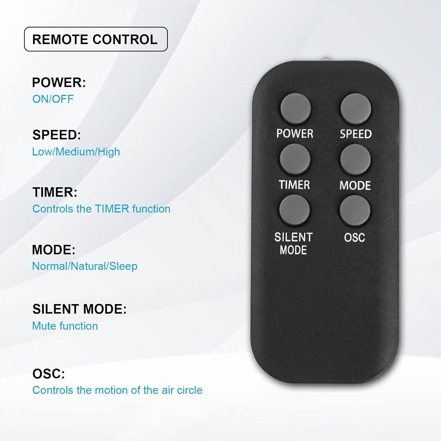 Вентилятор MilWorks напольный с пультом управления, 3 режима скорости, 120см. 45 Вт. Цифровой дисплей. Мощный. Белый