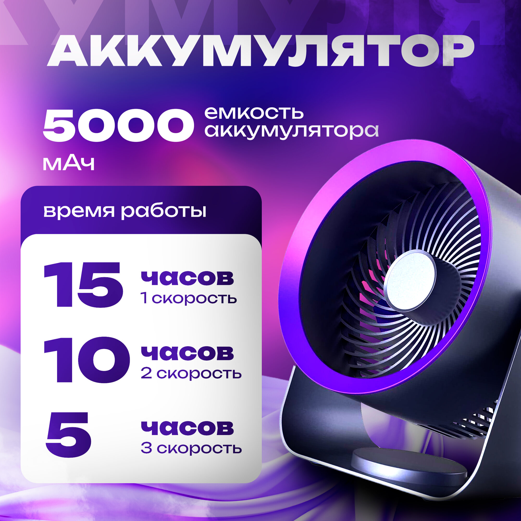 Вентилятор аккумуляторный портативный настенный настольный циклонный, 5000 мАч, CRUSHARK информация: