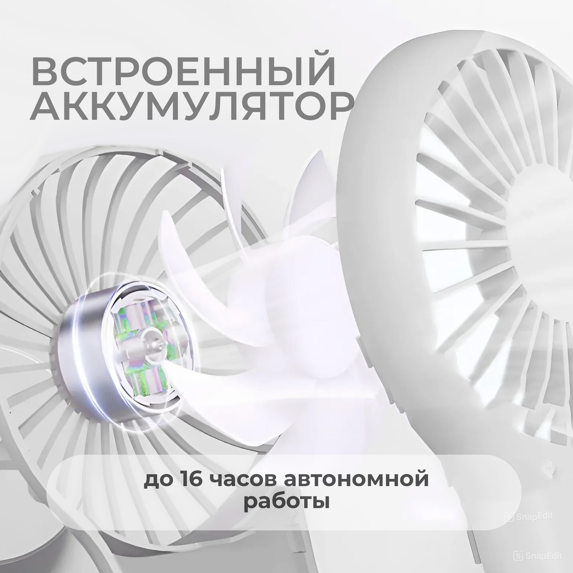 Вентилятор, 5 режимов, поворотный, с крючком-подставкой, белый // вентилятор ручной, вентилятор настольный 376 ₽
