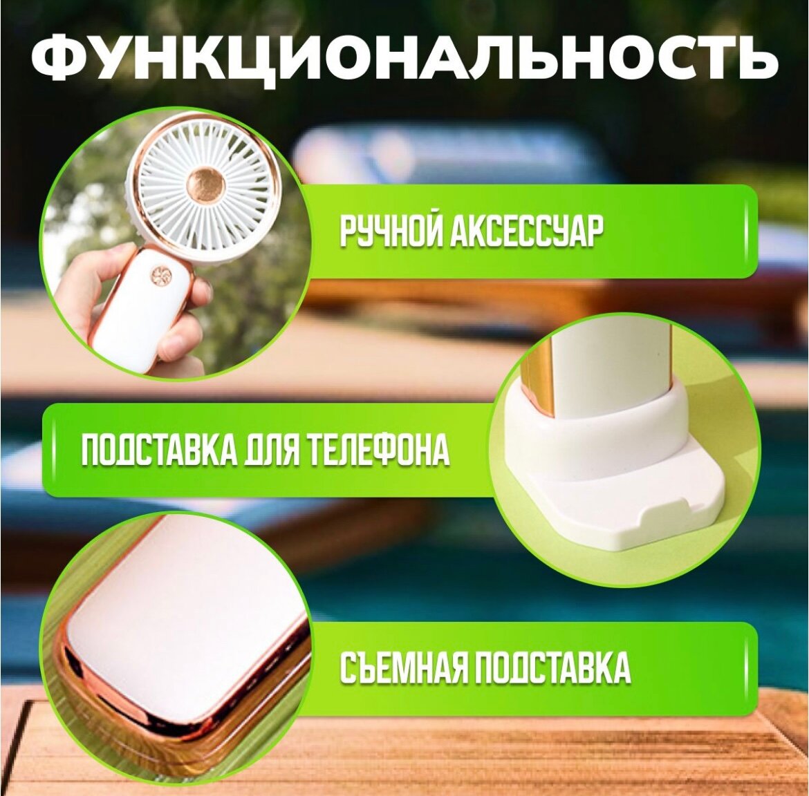 Вентилятор ручной портативный бесшумный маленький USB, white информация: