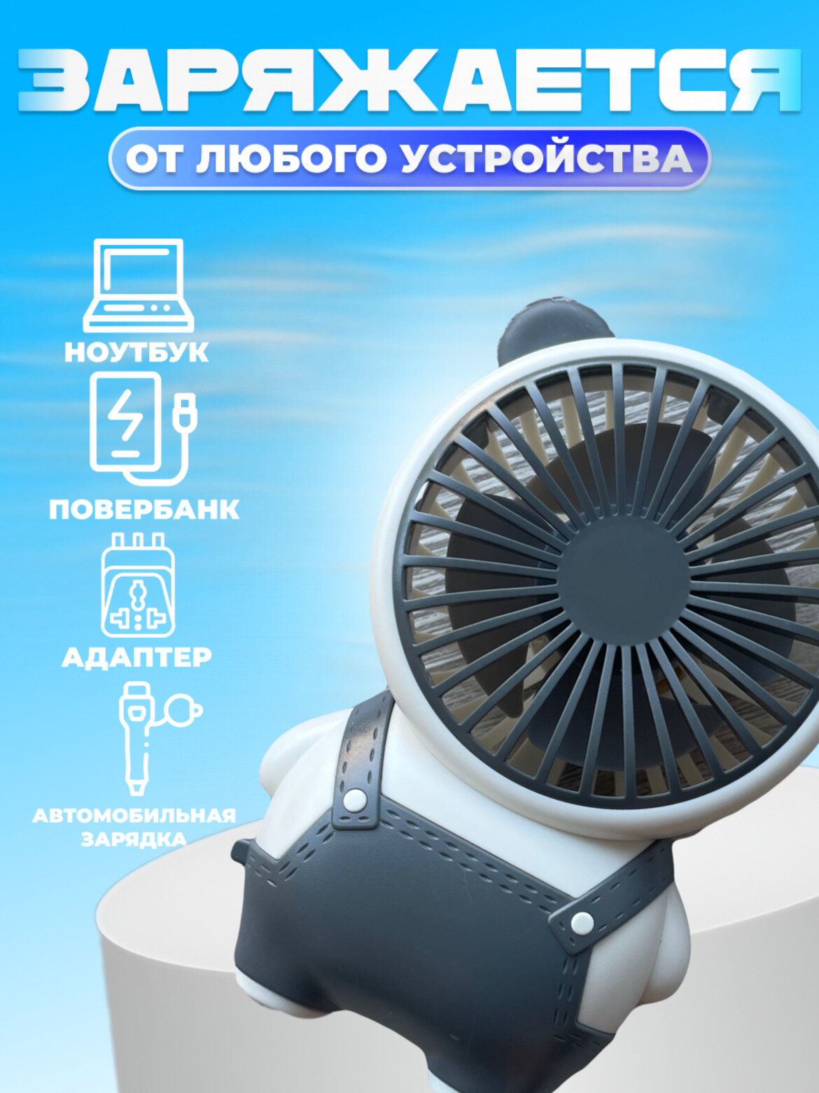 Вентилятор ручной портативный бесшумный маленький USB, Мишка информация: