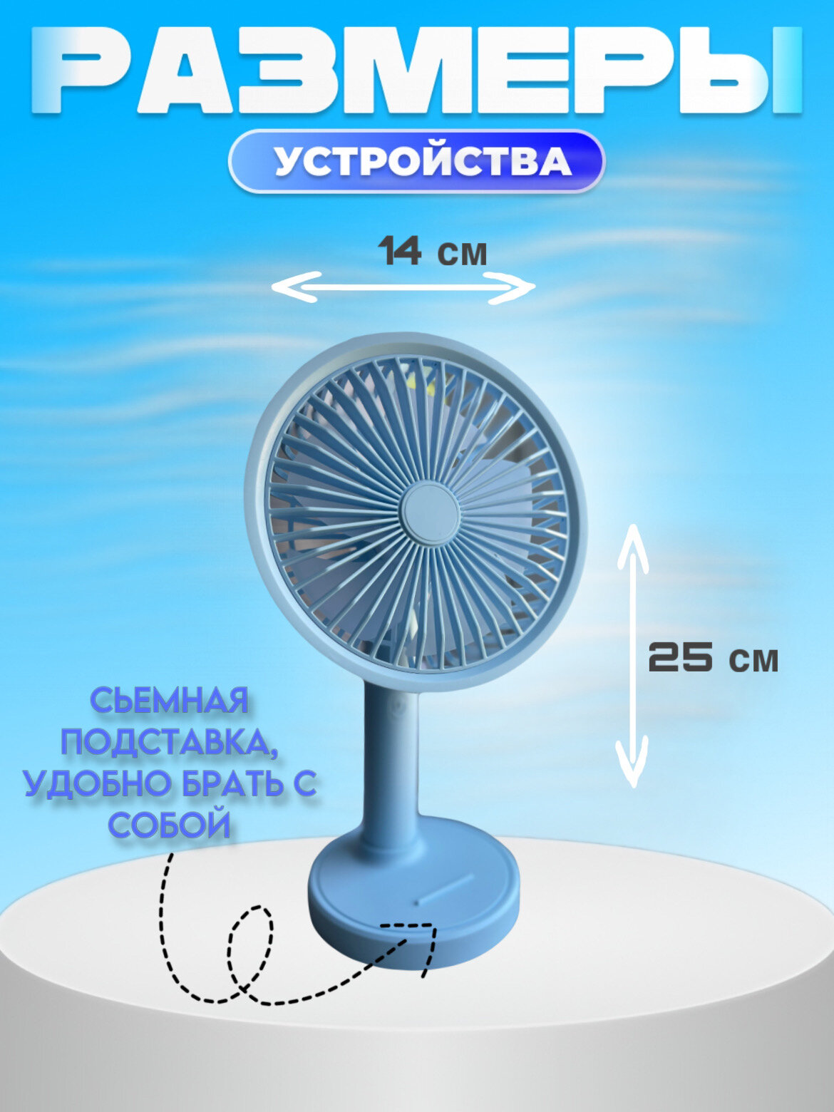 Вентилятор настольный портативный, 3 режима, голубой информация: