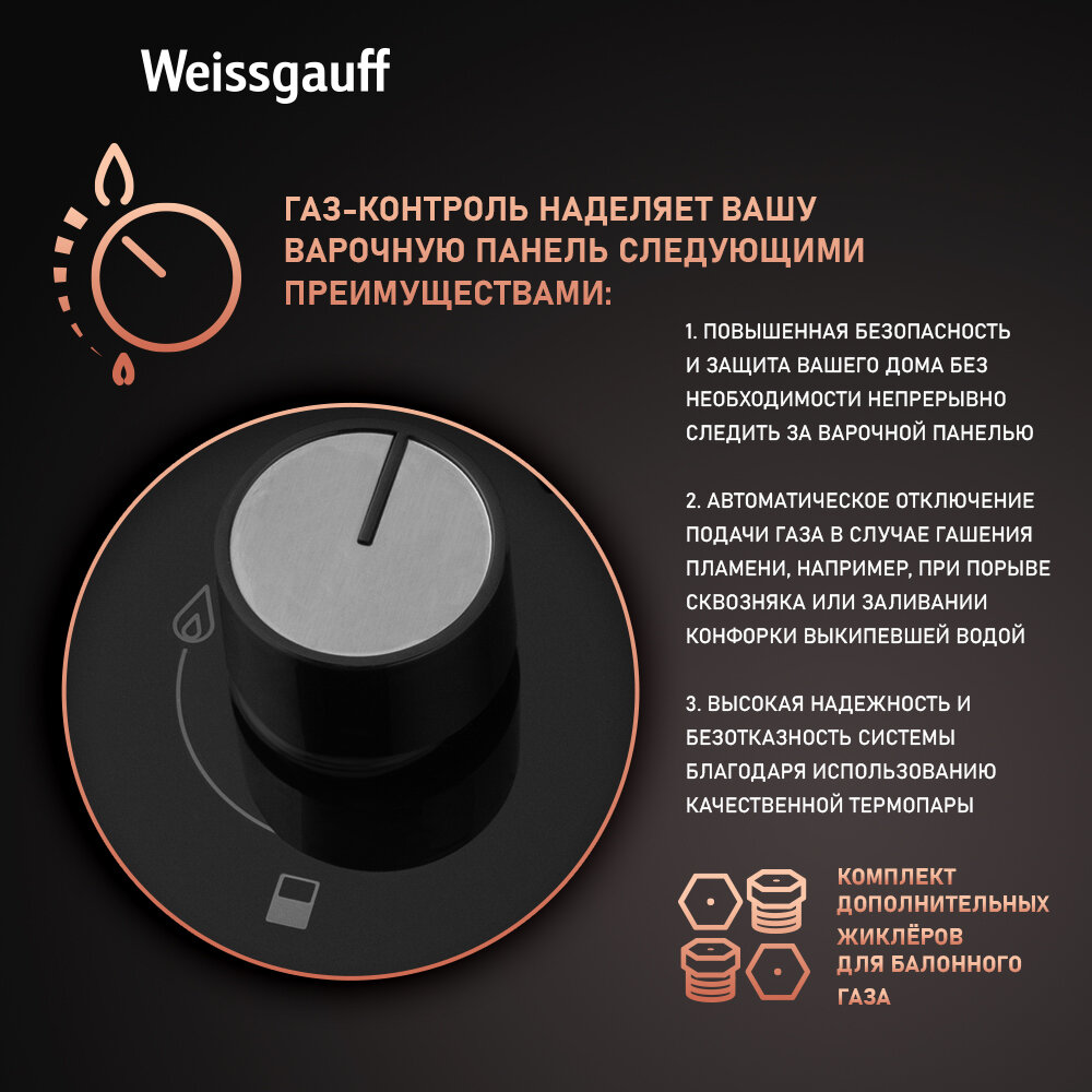 10 цен на Варочная панель Weissgauff HGG 320 BGRV 3 года гарантии, автоматический электроподжиг, Рукоятки Hi-Tech, газ-контроль