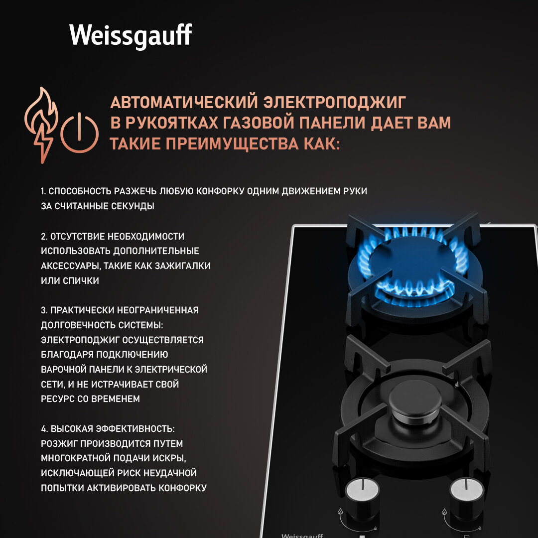 Варочная панель Weissgauff HGG 640 BGBV, Рукоятки Hi-Tech, Автоматический электроподжиг