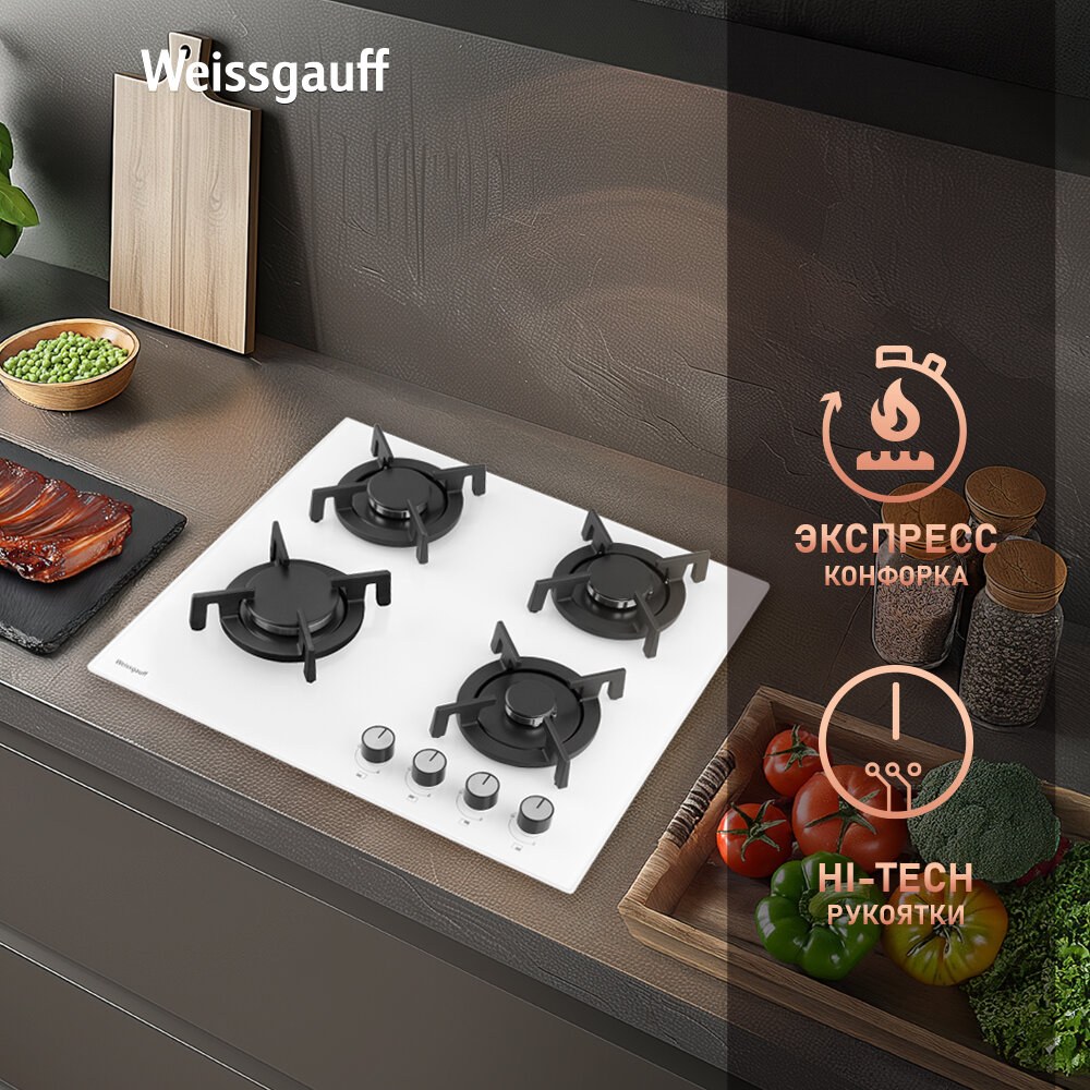 Варочная панель Weissgauff HG 640 WGV экспресс-конфорка, 3 года гарантии, автоматический электроподжиг, Рукоятки Hi-Tech информация: