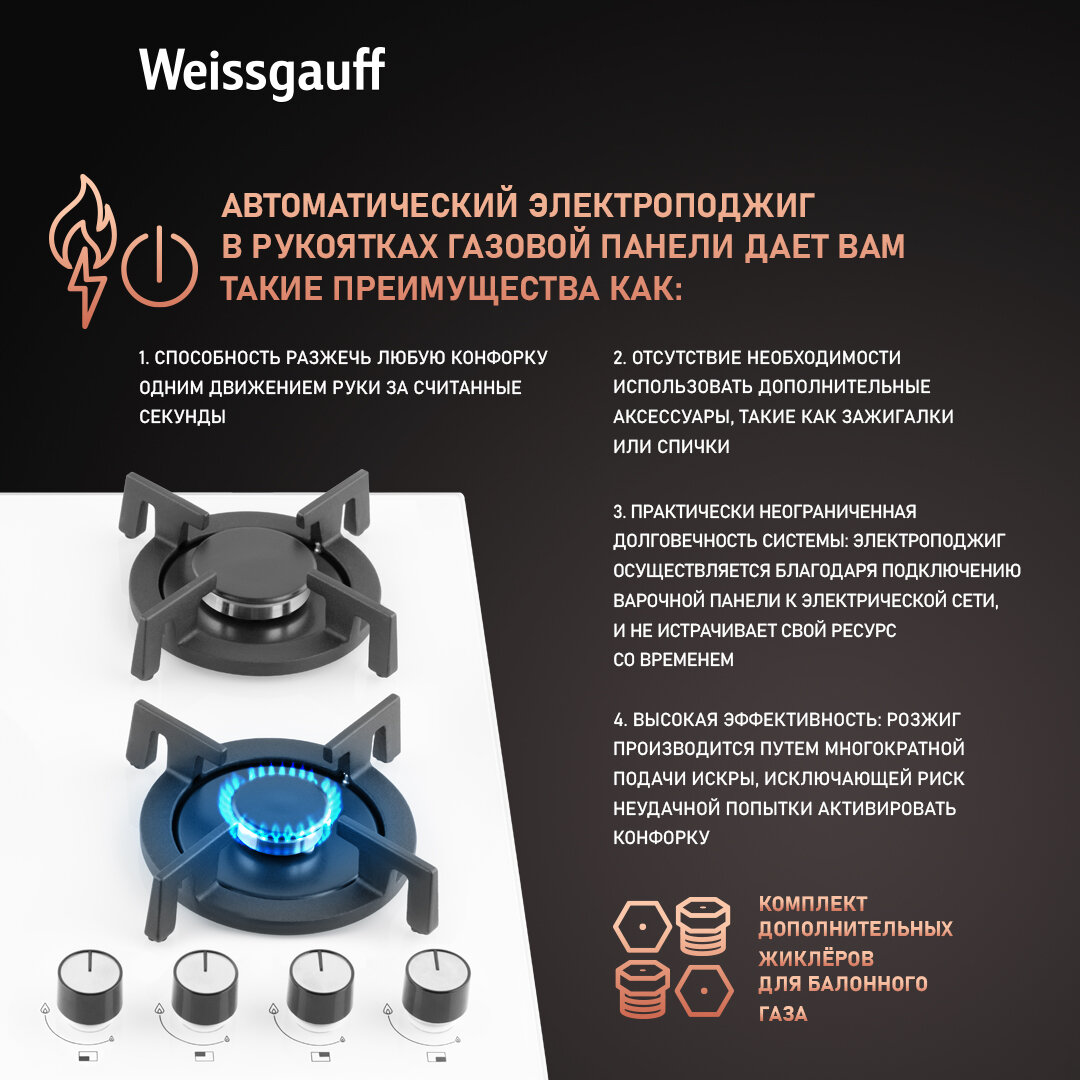 10 цен на Варочная панель Weissgauff HG 640 WGV экспресс-конфорка, 3 года гарантии, автоматический электроподжиг, Рукоятки Hi-Tech