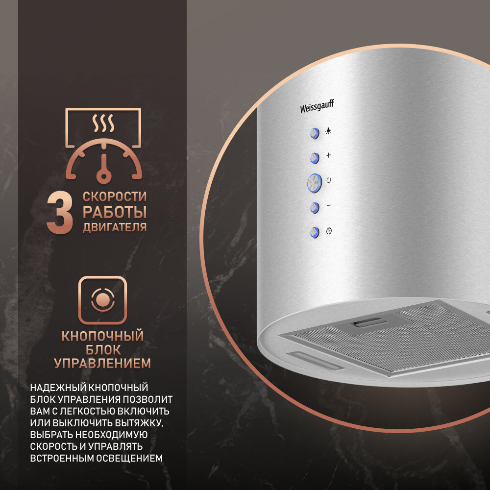 Вытяжка цилиндрическая пристенная Weissgauff Gracia 70 IX 3 года гарантии, Алюминиевый жировой фильтр, Низкий уровень шума информация: