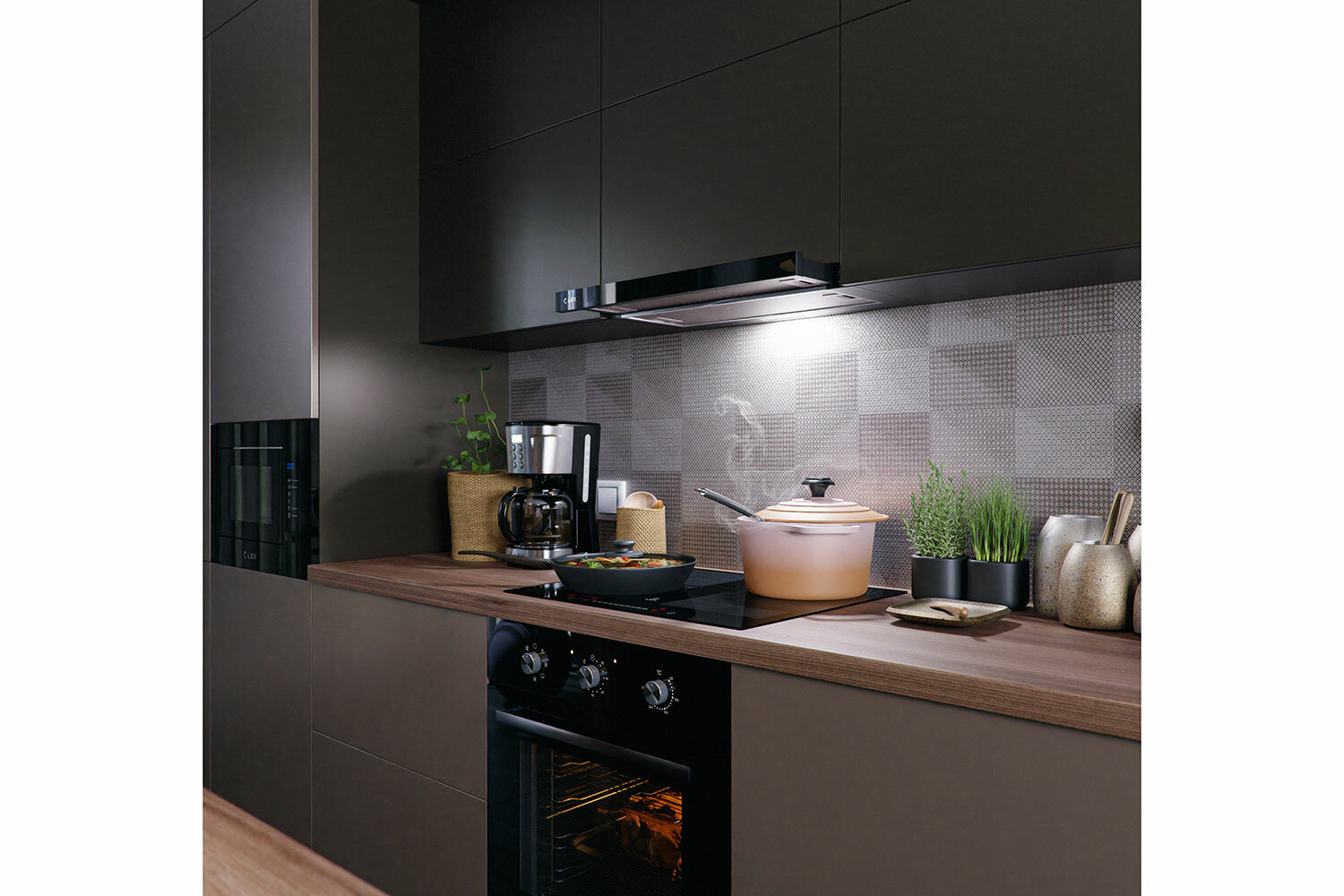 Вытяжка кухонная наклонная LEX MOZA 600 R1 Black, 60 см, отделка окрашенная сталь, стекло, 3 скорости, кнопочное управление LED лампы.