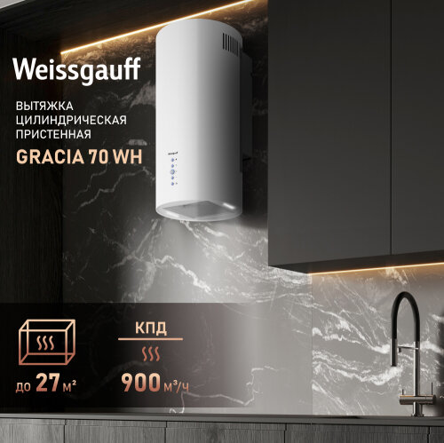 Вытяжка цилиндрическая пристенная Weissgauff Gracia 70 WH, Низкий уровень шума 23 680 ₽