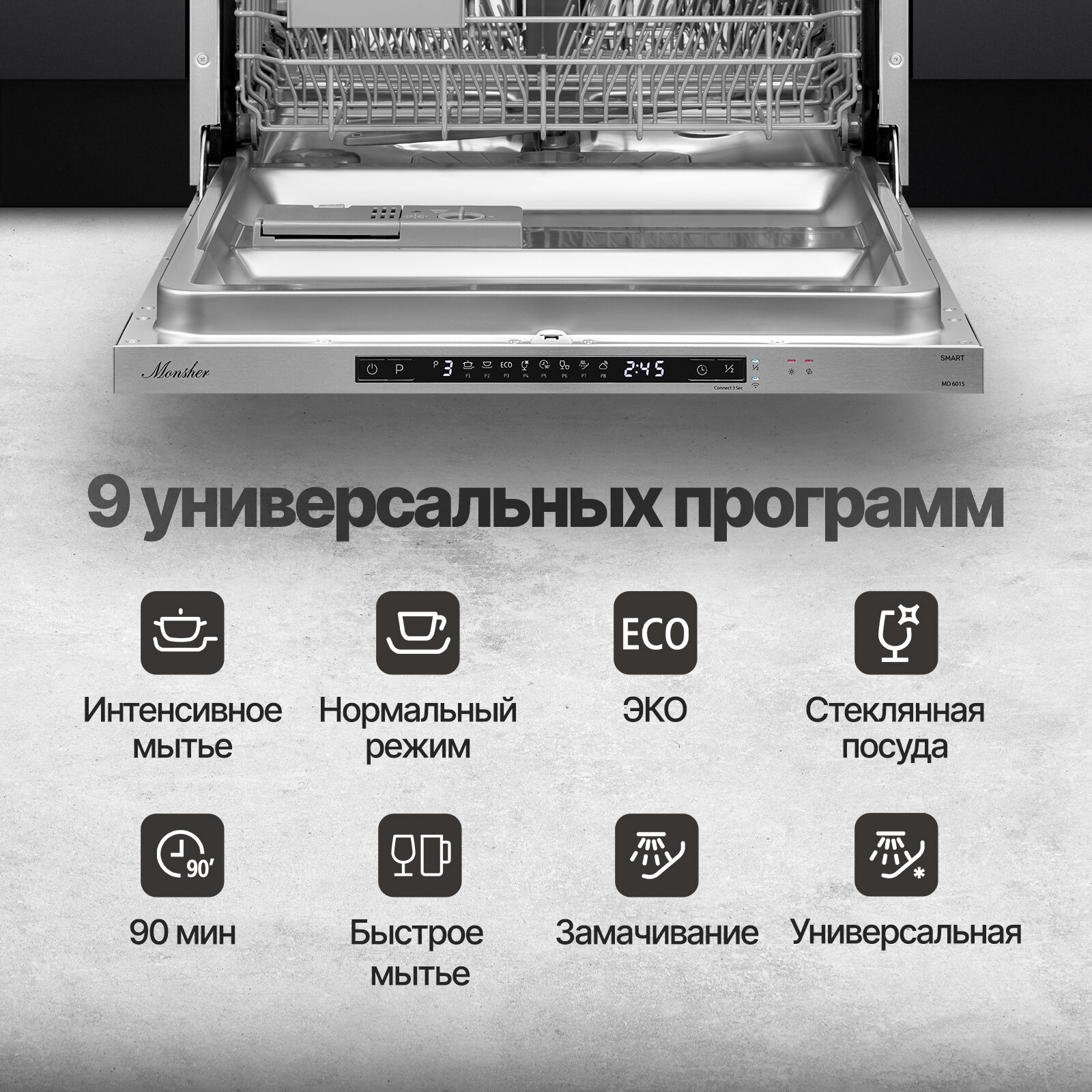 10 цен на Встраиваемая посудомоечная машина Monsher MD 6015, с лучом на полу (Модификация 2024 года)