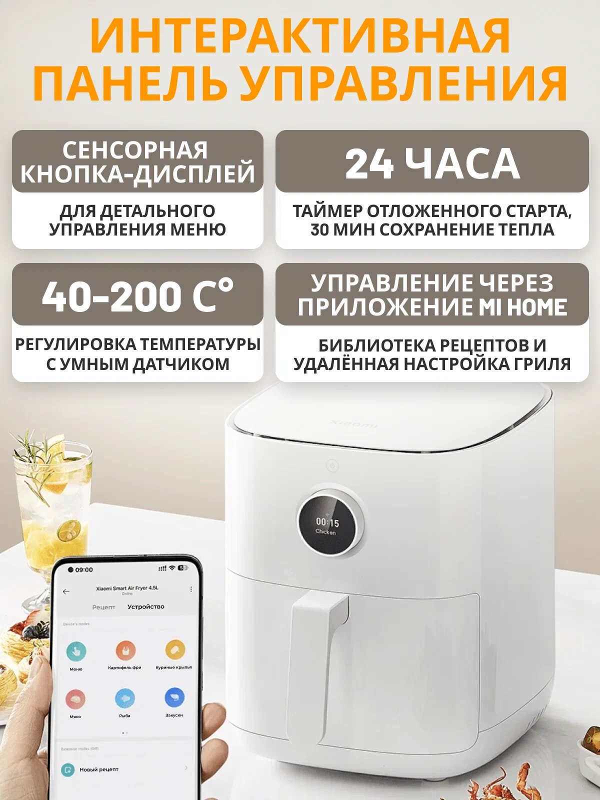 Аэрогриль Xiaomi Mi Smart Air Fryer 4.5L(MAF14)(BHR8234EU), белый, EU информация: