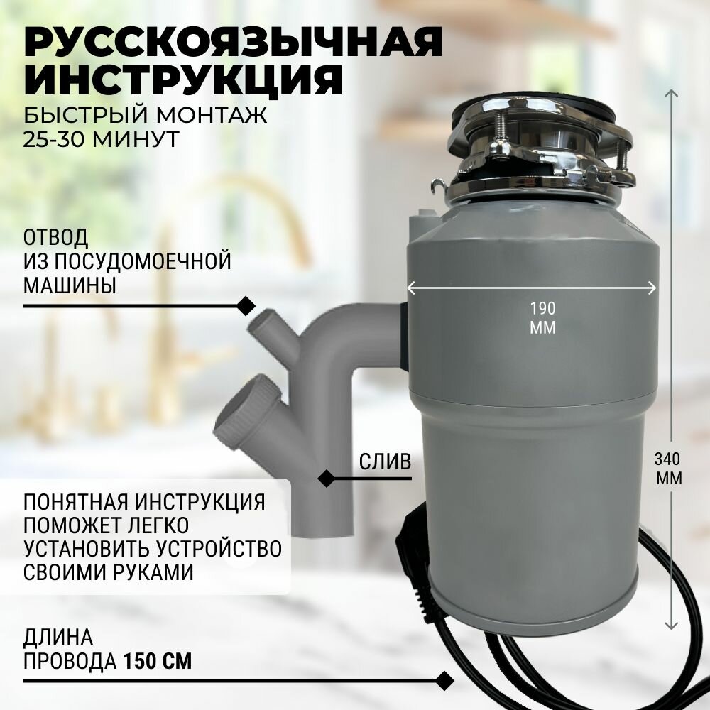 Отзывы на Измельчитель пищевых отходов RAUTT RW-630 серый, электрический, кухонный встраиваемый, 630 Вт, 1500 мл, измельчитель кухонный электрический в раковину, диспоузер