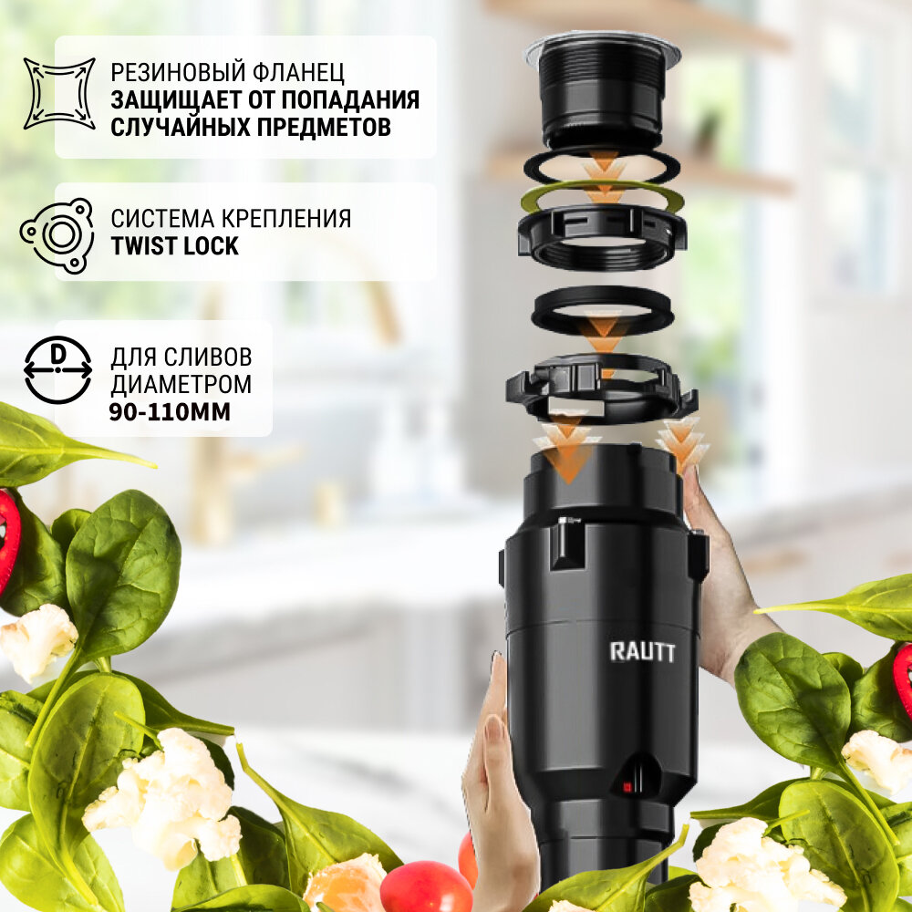 10 цен на Измельчитель пищевых отходов RAUTT RW-375 электрический, кухонный встраиваемый, 375 Вт, 1500 мл, измельчитель кухонный электрический в раковину, диспоузер