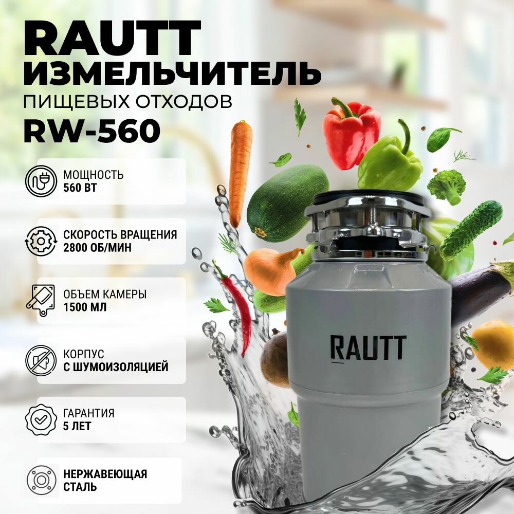 Отзывы на Измельчитель пищевых отходов RAUTT RW-560 серый, электрический, кухонный встраиваемый, 560 Вт, 1500 мл, измельчитель кухонный электрический в раковину, диспоузер