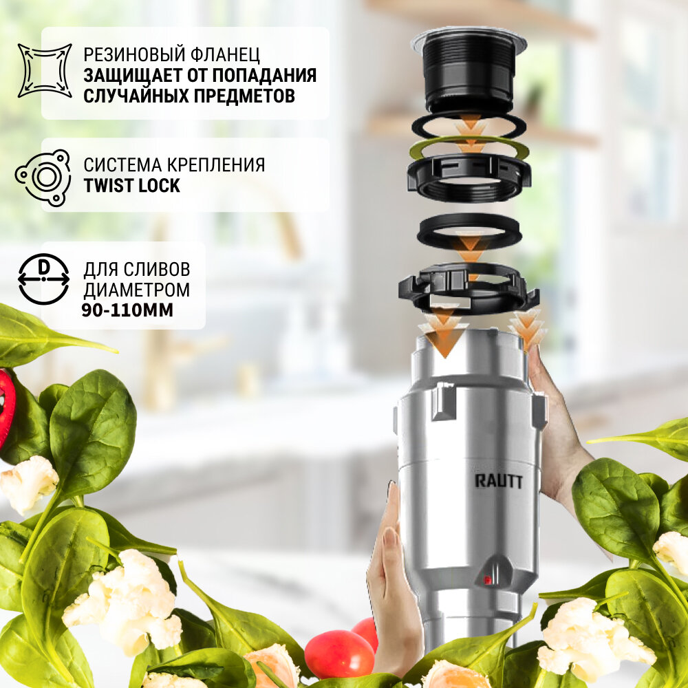 10 цен на Измельчитель бытовых отходов RAUTT RW-390, электрический, кухонный встраиваемый, 390 Вт, 1500 мл, измельчитель пищевых отходов кухонный, диспоузер