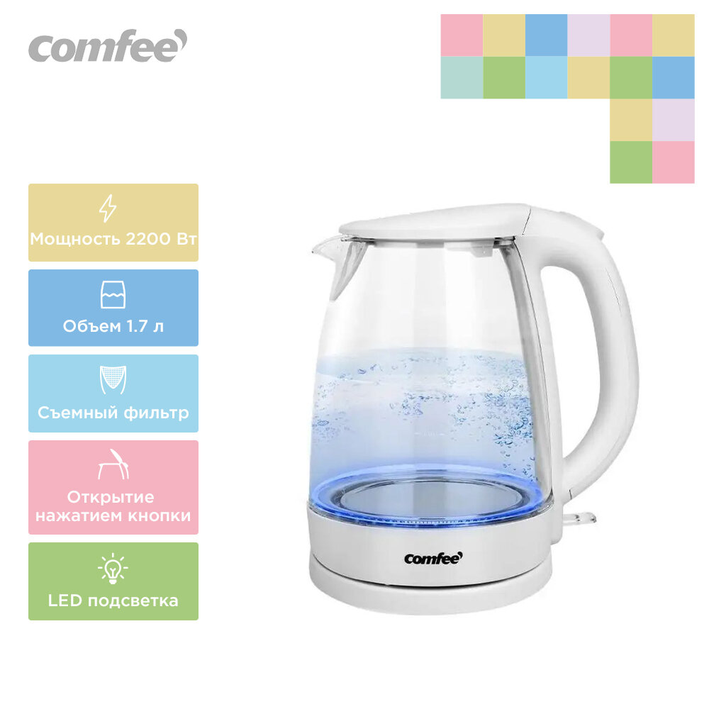 Отзывы на Чайник электрический Comfee CF-KT7001 объемом 1.7 литра, 2200 Вт, светло-серый