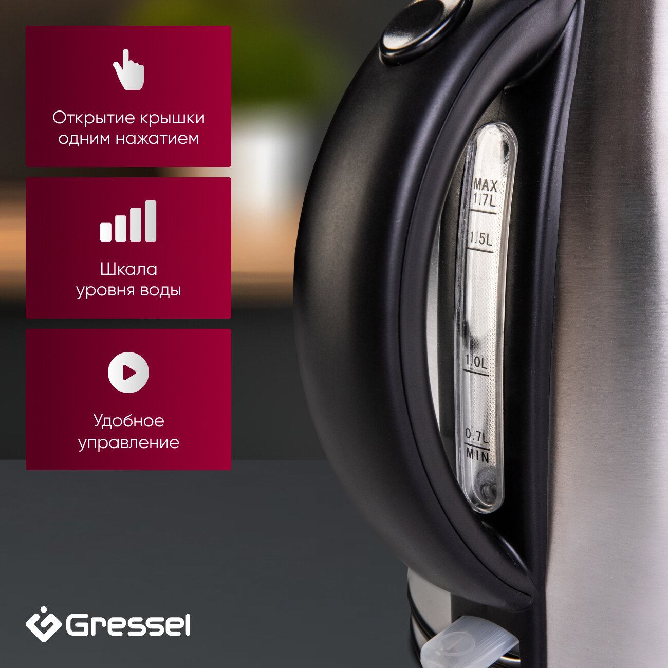 Отзывы на Чайник электрический Gressel GRK-1109S металлический, 1,7л, STRIX-контроллер