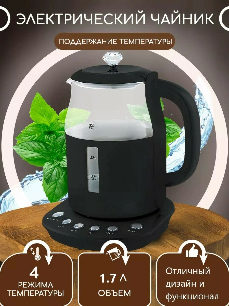 Электрочайник с регулировкой температуры, чайник электрический термопот, электрочайник черный, 1.7 литра, 4 режима для нагрева, черный информация: