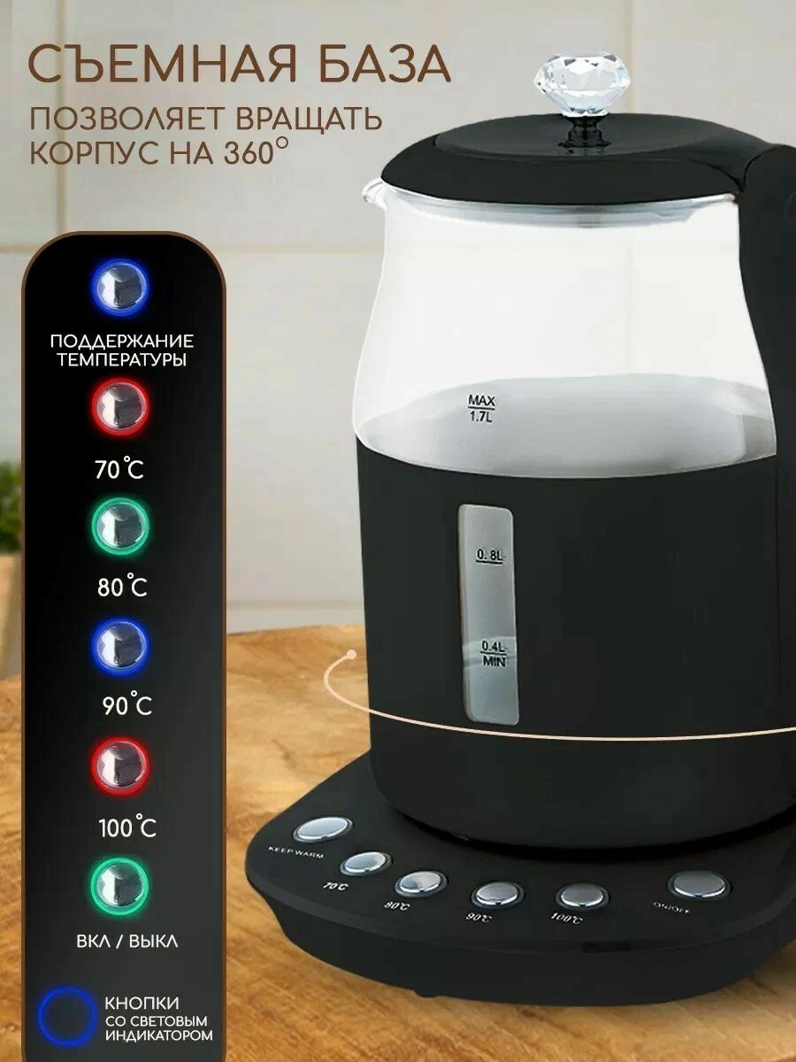 10 цен на Электрочайник с регулировкой температуры, чайник электрический термопот, электрочайник черный, 1.7 литра, 4 режима для нагрева, черный