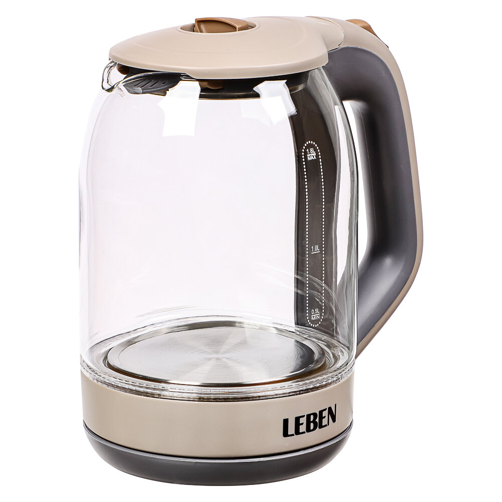 LEBEN Чайник электрический со стеклянной колбой, 1850 Вт, 1,7л информация:
