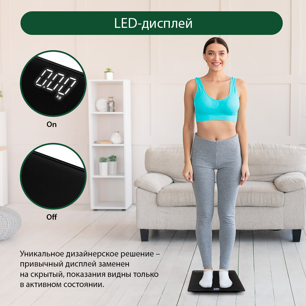 Весы напольные, электронные, диагностические, материал - пластик, стекло, точность - 50 г, вес до - 150 кг, GoodsMart, 1 шт.