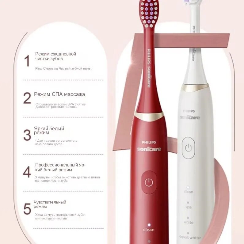 | Режимы | деликатная чистка, ежедневная чистка, массаж, отбеливание, уход за деснами |