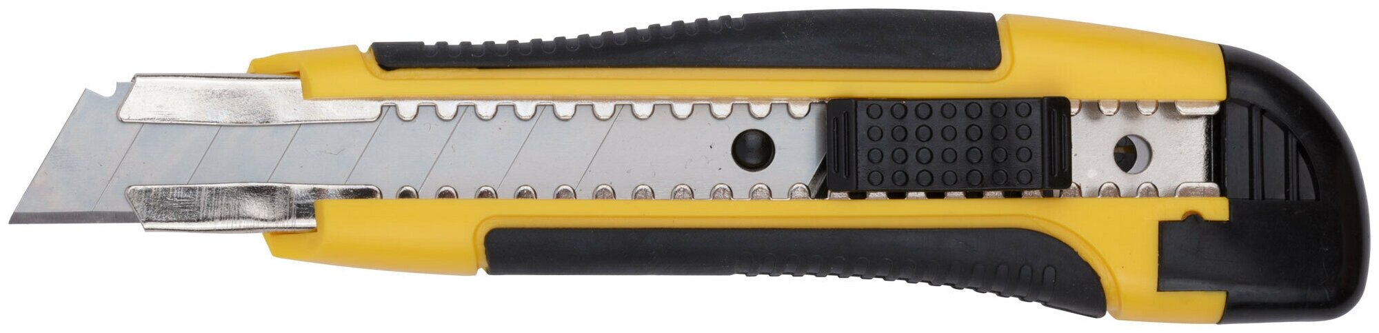 | Особенности | блокировка лезвия / отламывающееся лезвие / прорезиненная рукоятка / сменное лезвие |