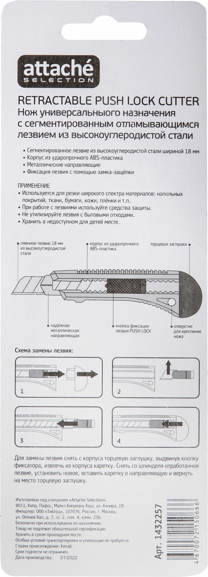| Дополнительная информация | Канцелярский нож Attache Selection строительный, ширина лезвия 18 мм, с фиксатором |